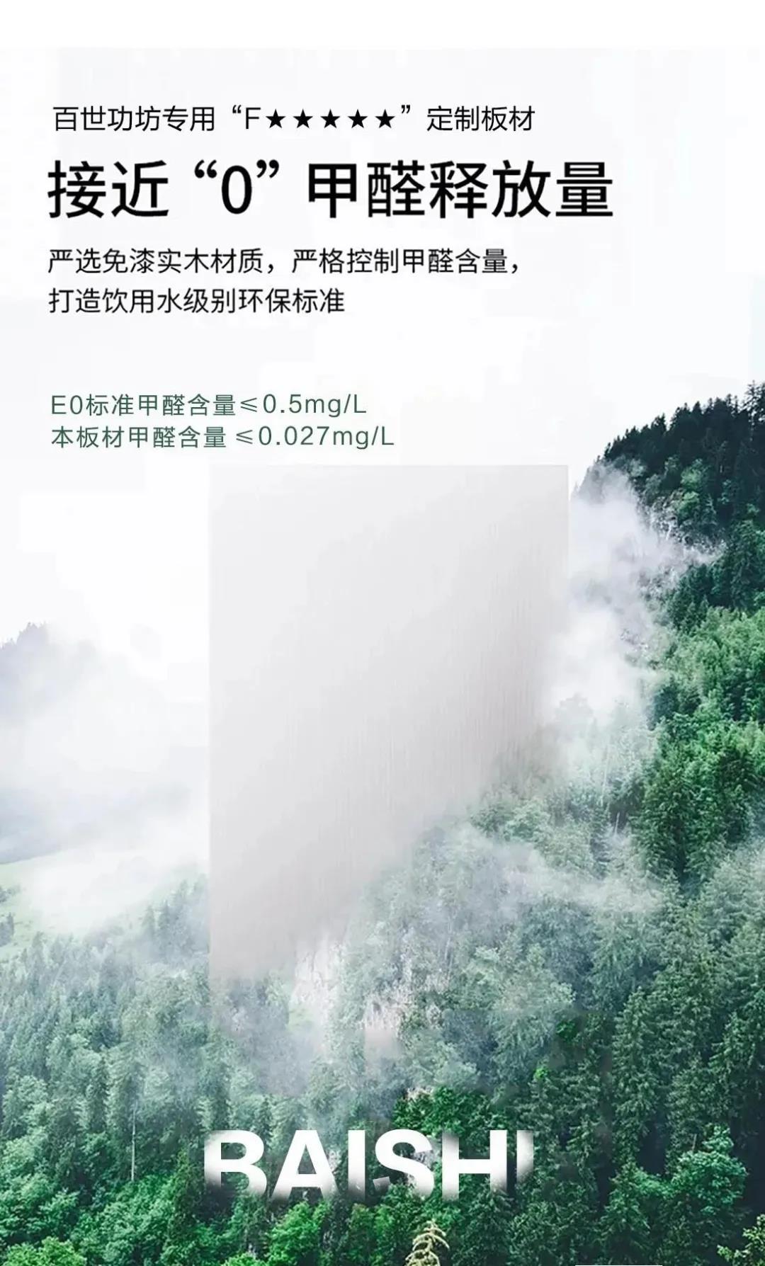 所有产品采用甲醛“0”添加的“F★★★★★”板材